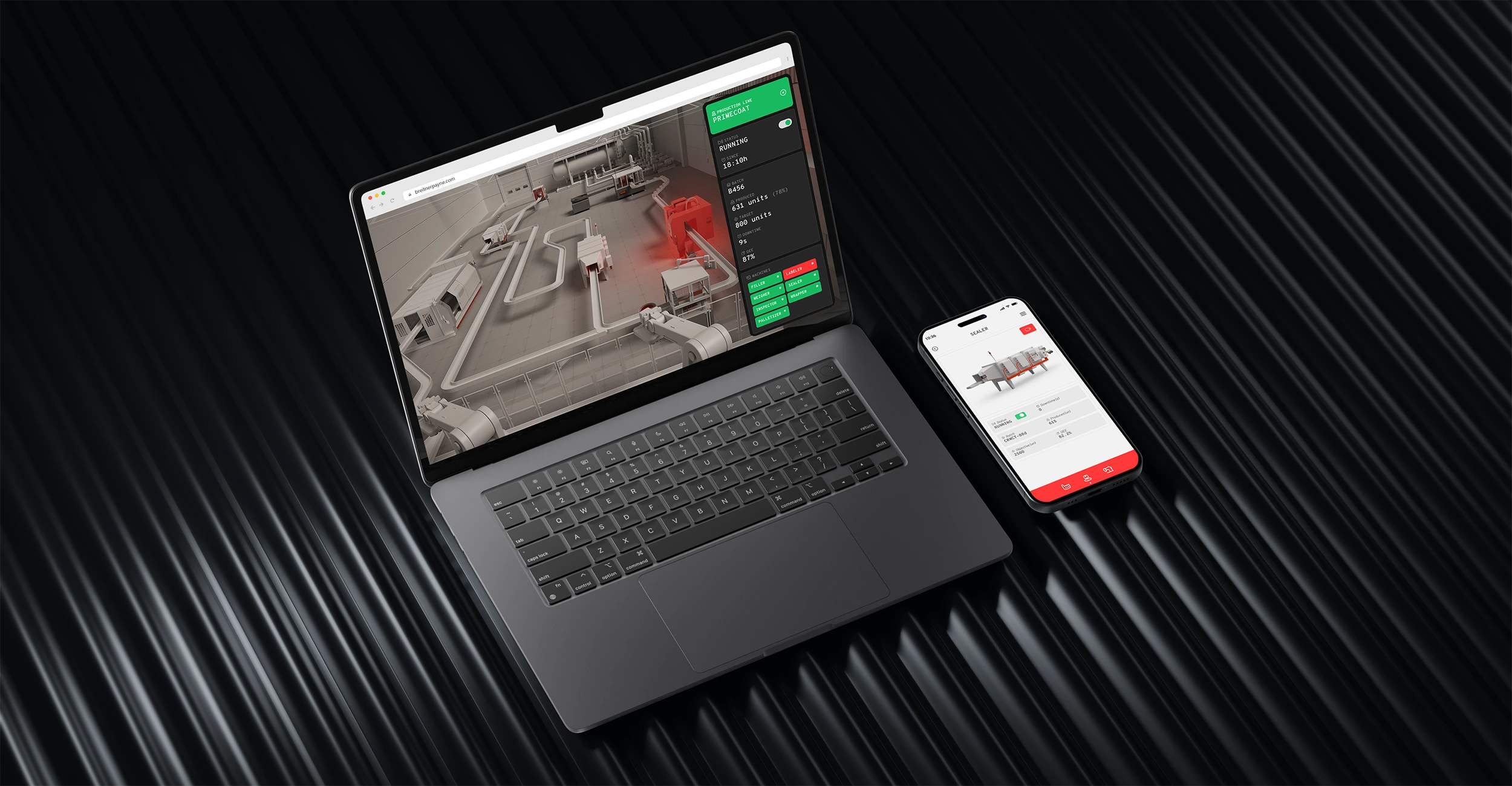 The mobile app serves as a companion tool, offering a real-time overview of the factory’s operations with key metrics. In addition to monitoring, it allows users to adjust factory parameters, providing a streamlined and accessible control interface.