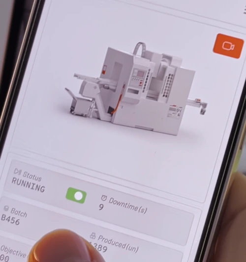 The mobile app is the remote control for the factory. It allows a quick overview of the factory’s operations, change factory settings and switch between camera views in the visualization.